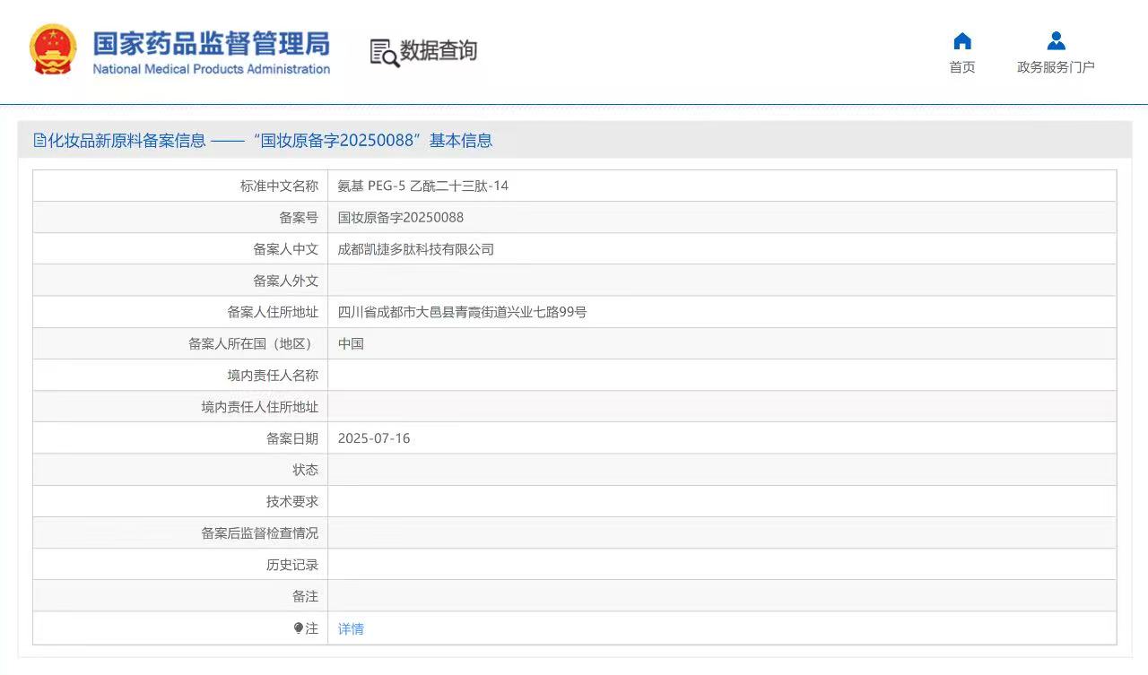 7月,氨基PEG-5乙酰二十三肽-14(国妆原备字20250088)