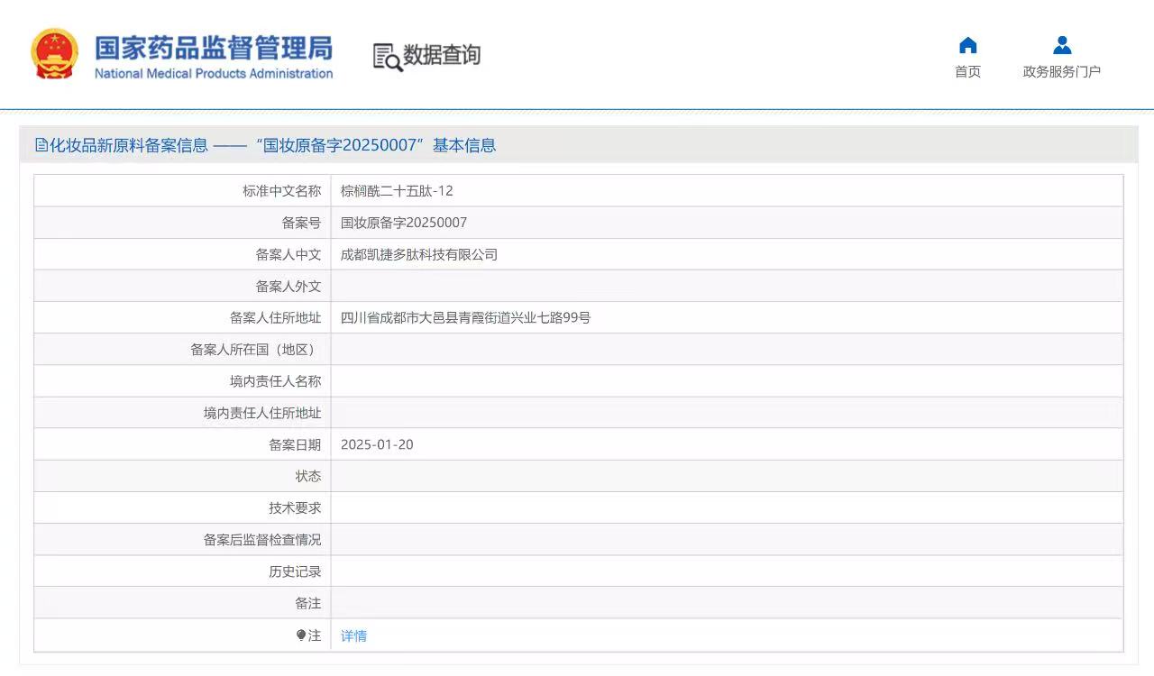 1月,棕榈酰二十五肽-12(国妆原备字20250007)
